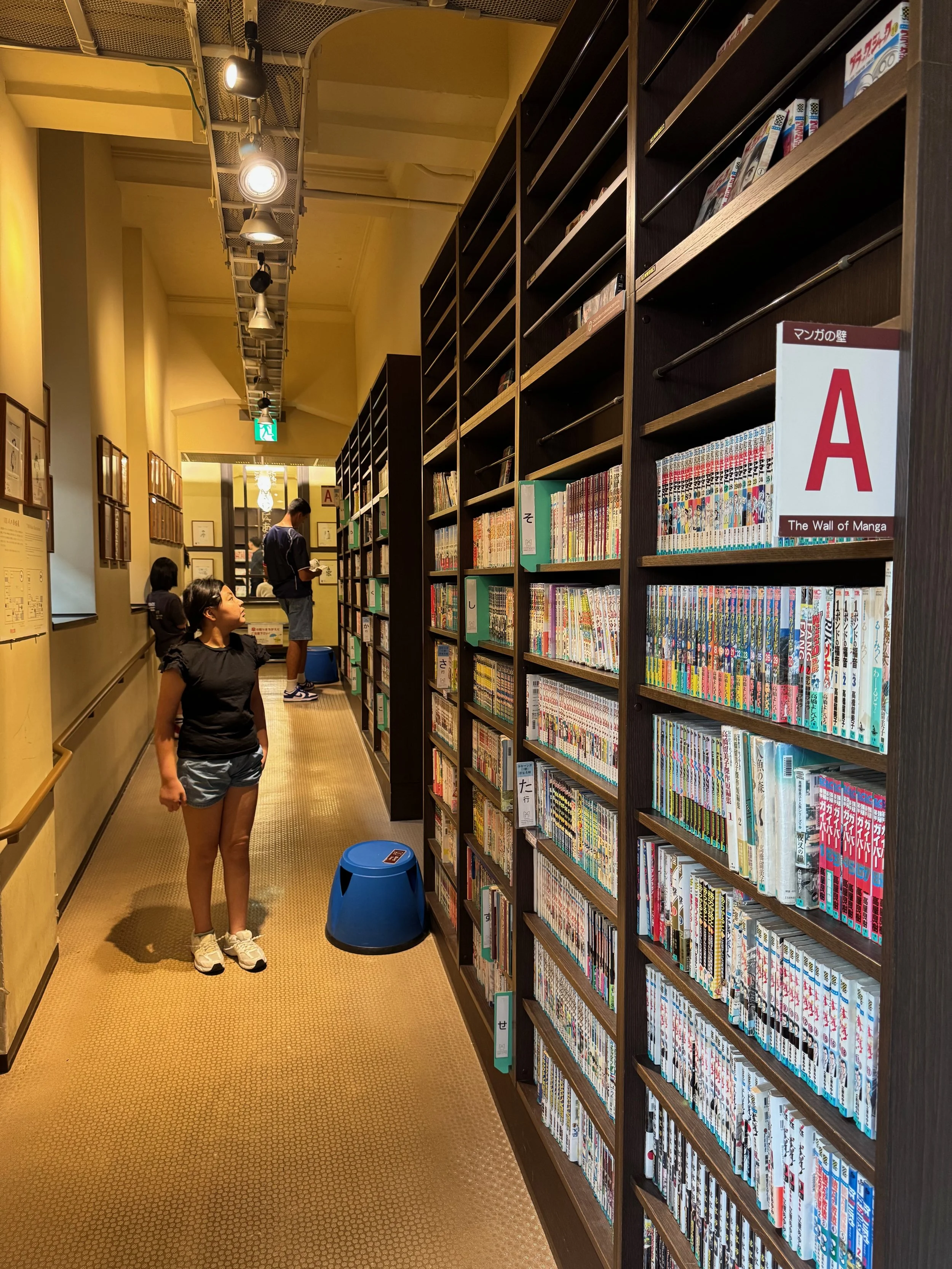 The following morning we packed our bags and took the e-bikes for the last time to travel to the famous Kyoto Manga Museum. There is a quite trendy cafe next to it where we got good coffee and some French toast. The museum itself is situated in a former elementary school building and the school vibe is clearly present. Unsurprisingly, the museum contains lots of various manga editions (including non-Japanese comics), has artists drawing your manga portrait and has a reading space for children where you can lie down without shoes. We also spotted a funny children book (see picture) called “niwa no wani” - that sounds funny and means “garden crocodile”. Museum is recommended!